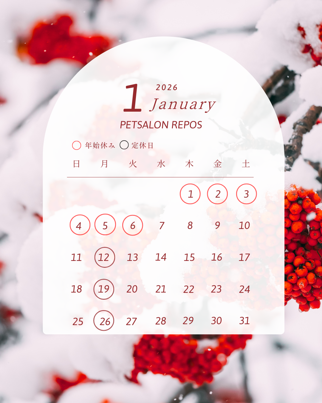 年始は1月7日から通常営業致します。 ご予約お待ちしております。